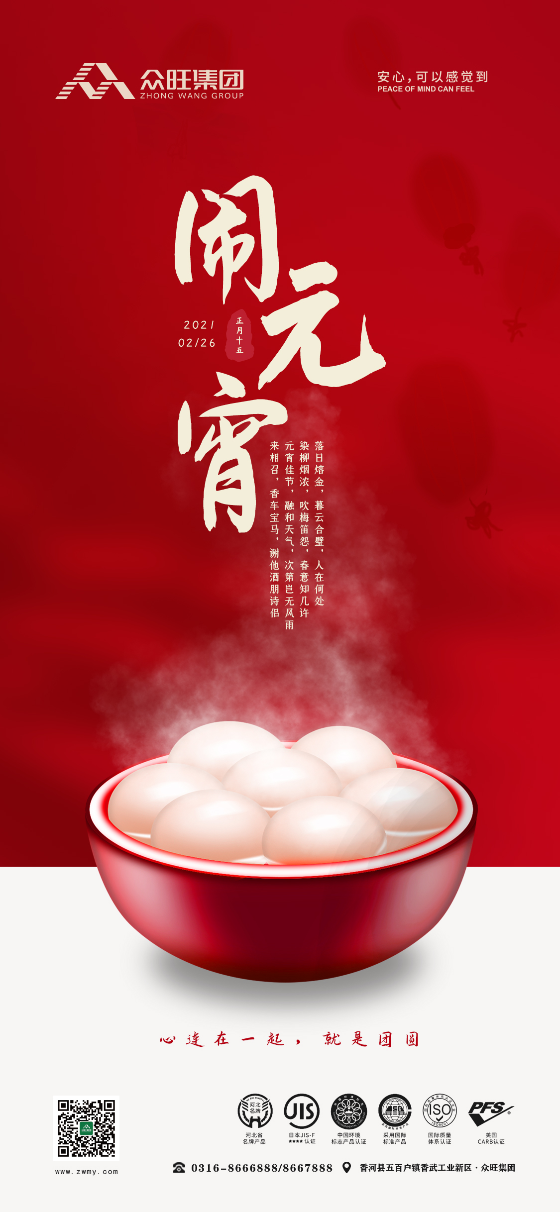眾旺集團(tuán)攜全體員工祝各位朋友正月十五元宵節(jié):日?qǐng)A,月圓,團(tuán)團(tuán)圓圓!官源,財(cái)源,左右逢源!人緣,福緣,緣緣不斷!情愿,心愿,愿愿隨心!